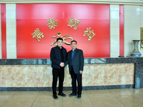 3月31日上午,博泰鋼構(gòu)公司生產(chǎn)地——涿鹿博泰鋼構(gòu)迎來(lái)了一批來(lái)蒙古國(guó)的客戶(hù)實(shí)地考察,公司范清河總經(jīng)理熱情接待。